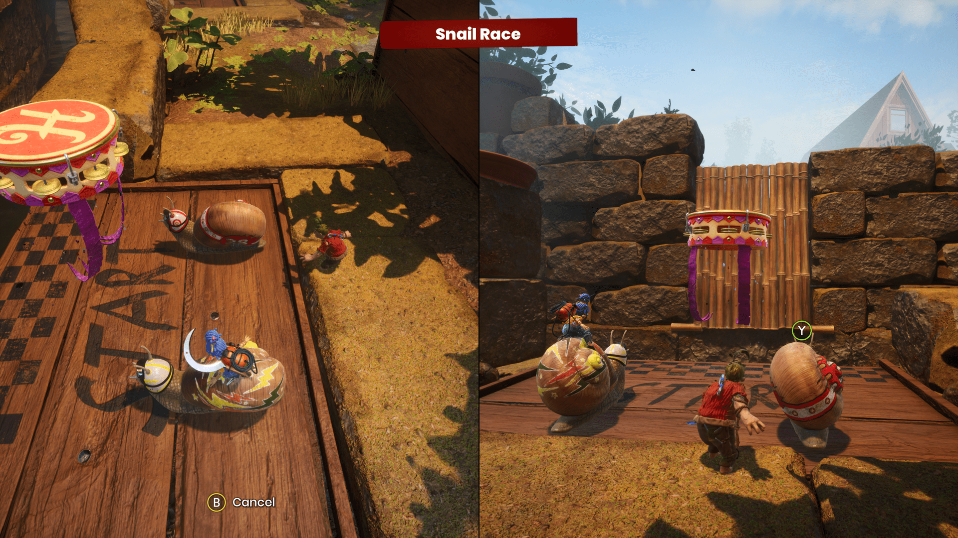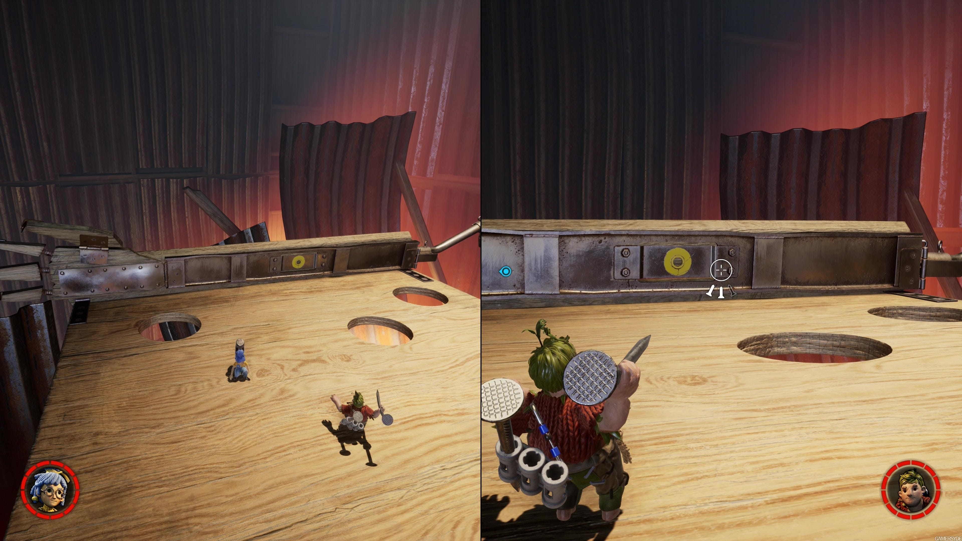 La genialità narrativa e del game design, inoltre, sta anche nella straordinaria mescolanza dei generi videoludici che rende il gameplay sempre coinvolgente e vario, in cui i due giocatori co-op dovranno veramente mettere in gioco ogni loro abilità cognitiva e "motoria" per coordinarsi nell'intricato level design di It Takes Two. Josef Fares è un regista prima che game designer, e lo si vede chiaramente a partire dal registro registico che vuole conferire al suo capolavoro. La gestione degli split screen è geniale quanto in A Way Out nel distorcere le inquadrature e cambiare la loro posizione, fino a farle scomparire in certi punti quando i personaggi devono unire le loro forze in un particolare scenario di gioco. Il valore aggiunto rispetto all'opera precedente di Hazelight Studios, però, è la messa in scena fantasiosa che vuole ergersi come compendio di tutta l'arte videoludica, andando quindi oltre il genere platform action-adventure in cui è incasellato il gioco. Lo split screen è infatti al servizio di uno spettacolo pirotecnico come quello di una giostra infinita, che può decidere di passare all'improvviso da una visuale in terza persona con camera a spalla ad una isometrica o 2D in modalità picchiaduro, per poi catapultare il gamer in una situazione in cui dallo spostarsi a piedi bisogna immediatamente guidare veri e propri veicoli - anche animali - di terra, aria e acqua per superare un determinato ostacolo, specialmente se immerso nella natura. Il level design è quindi estremamente dinamico, ponendo i giocatori co-op in un ambiente di gioco imprevedibile in cui dovranno sviluppare una spiccata abilità adattiva ad ogni contesto di gioco e una profonda sinergia per combinare i propri poteri che varieranno di situazione in situazione (controllare il tempo è decisamente il potere più fico del gioco). L'interattività co-op di It Takes Two è rivoluzionaria proprio perché l'ambiente di gioco "multiplayer" non è mai statico e monolitico come in uno sparatutto ad esempio, ma è sempre in costante mutamento, tanto da rendere le sfide di ogni tipo un vero e proprio rompicapo, in cui bisognerà coordinare efficacemente il problem solving per gli "enigmi" platform con i riflessi per le parti più action. Unire i propri poteri - incredibili da qualsiasi punti di vista a partire dalla grafica - e combinarli sarà così essenziale e vitale per il superamento del livello, ma anche una vera e propria soddisfazione quando si scoprirà che l'unione fa veramente la forza, portando i giocatori a tifare per una ritrovata unione tra i due coniugi, che solo nella loro COL-LA-BO-RA-TION risplendono veramente nella loro fragile ma dolce umanità.